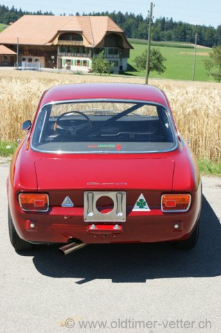Giulia Sprint GTA 1965. Dieses Fahrzeug wartete über zwanzig Jahre auf seine Restauration. Starschuss zum Projekt war Dezember 2008. Die Restauration wurde im Frühsommer 2012 abgeschlossen.